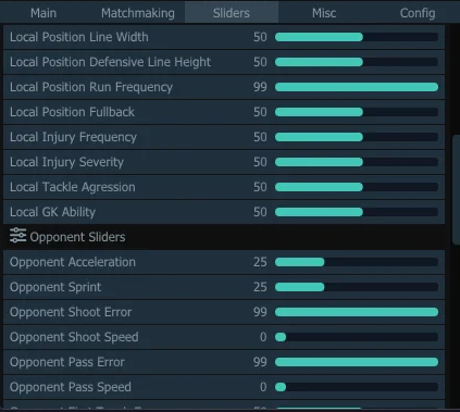 - Opponent Player Sliders