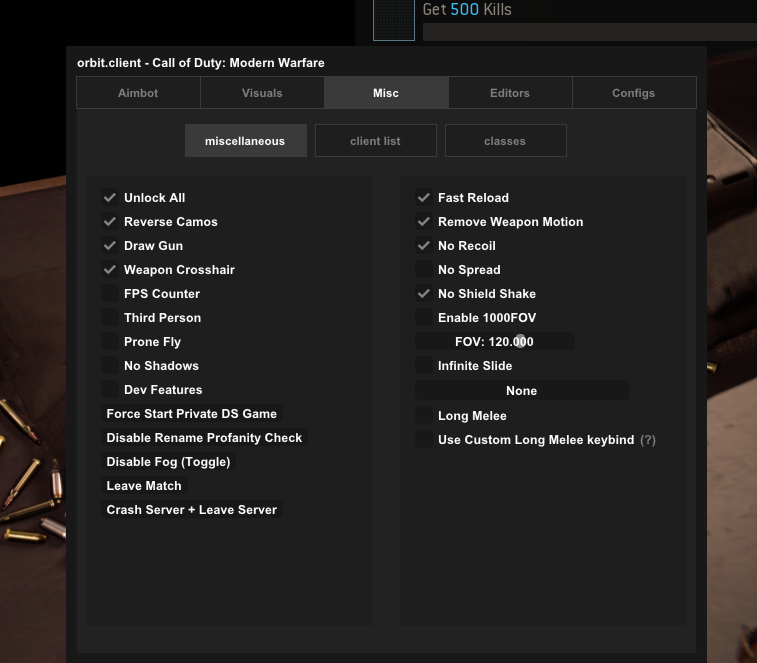 - No Recoil / No Spread / No Sway